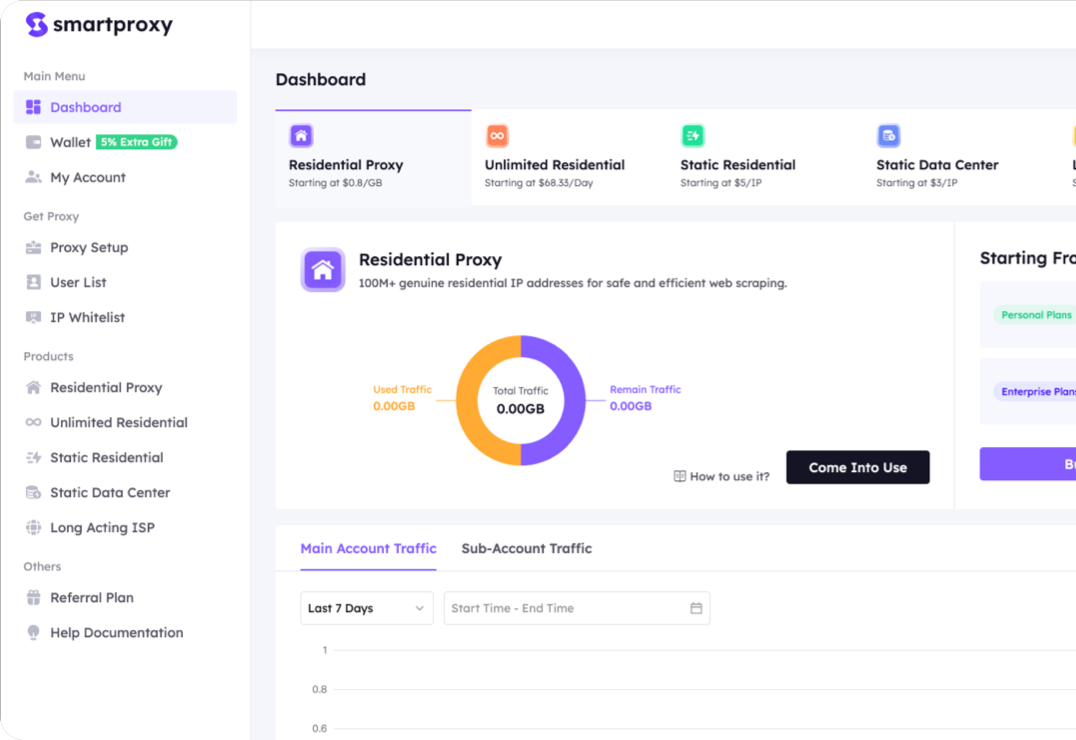 SmartProxy delivers reliable residential and datacenter proxies optimized for daily operations in AI, automation, and data-driven industries. With enterprise-grade stability, real-time analytics, and an intuitive dashboard, we help you scale smarter and move faster.